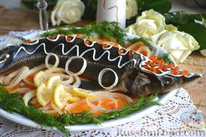 Рецепт №4: Запеченная осетровая рыба с овощами
